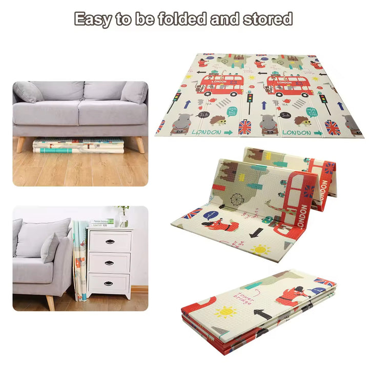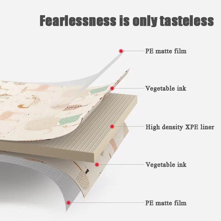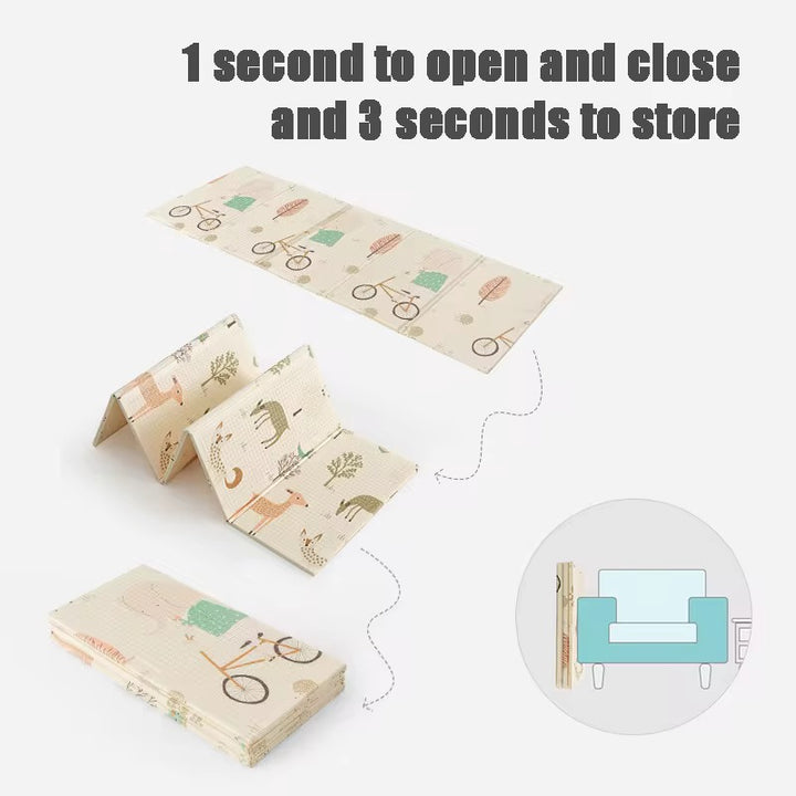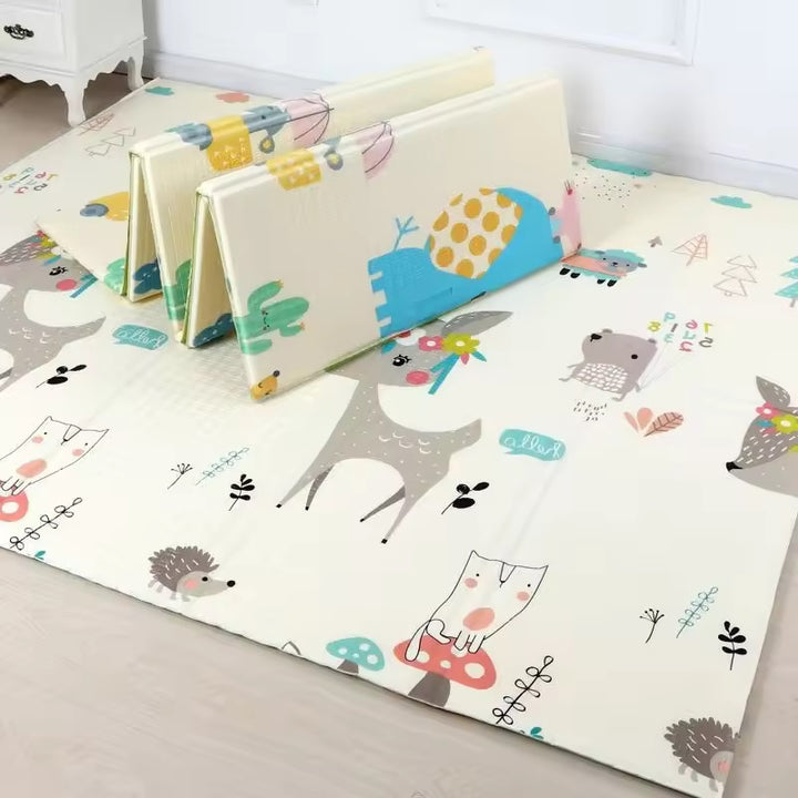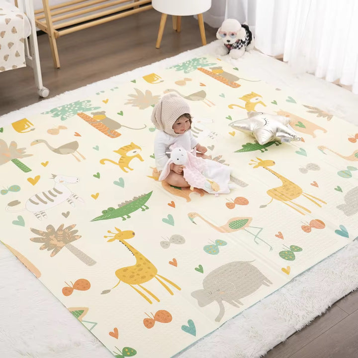The Medium Size mat measures 70 inches × 36 inches ,ideal for compact spaces while still offering plenty of room for your baby to move freely. Made with 6 layers, including XPE foam cotton and durable printed PE film, it provides extra cushioning, insulation, and long-lasting comfort.