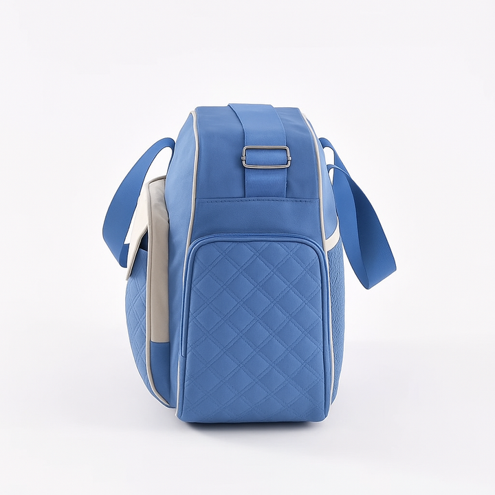 Keep all your baby essentials organized with this Large Capacity Baby Diaper Bag. Designed with soft quilted texture and a modern blue finish, this stylish bag includes multiple compartments for bottles, diapers, wipes, and more.