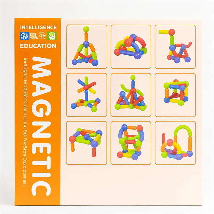 Yeh strong magnetic rods & balls ka premium set hai jo multiple shapes, animals, vehicles, buildings aur creative models banane ke kaam ata hai.