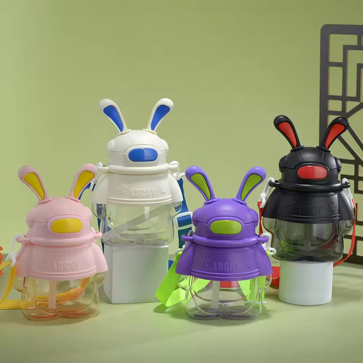 Rabbit Straw Bottle 800ml – Baby Water Bottle with Strap