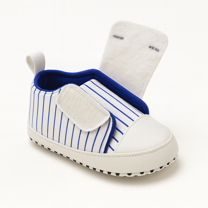 Soft Striped Baby Shoes with Velcro Strap – Blue